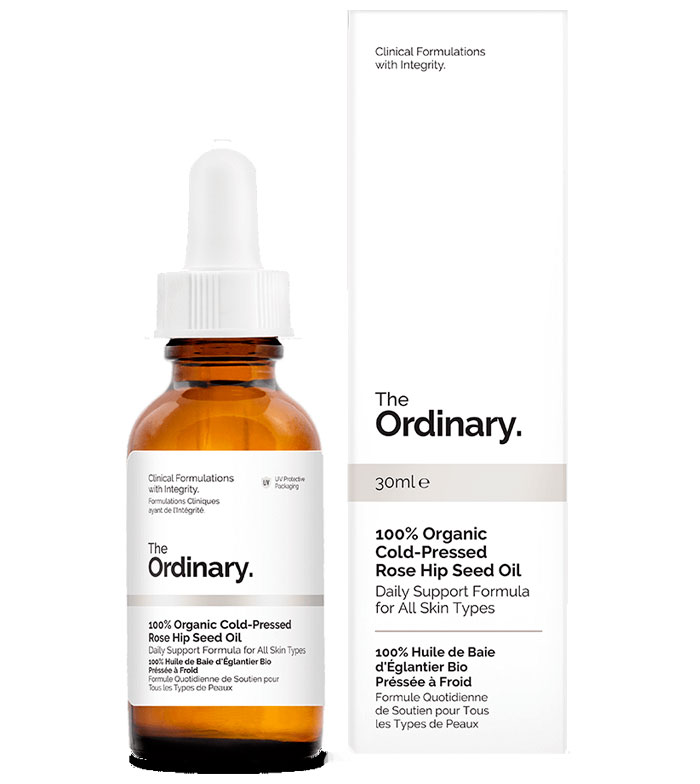 - The Ordinary - 100% Organic Cold-Pressed Rose Hip Seed Oil: escolhi este óleo para ser o último passo na minha rotina de pele de noite. No fim de tudo (limpar,serúm e creme hidratante), uso umas gotinhas deste óleo no rosto, para "selar" tudo o resto. Isto porque ele ajuda na cicatrização (do acne por exemplo), é anti-oxidante, hidratante e ajuda a disfarçar rugas e linhas de expressão.
